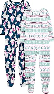 Unisex Kids' Holiday Loose-Fit Flame Resistant Fleece Footed Pajamas, Pack of 2